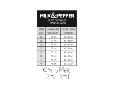 đ Conseil taille : Consulte le guide des tailles Milk&Pepper du tableau en image pour un ajustement parfait.