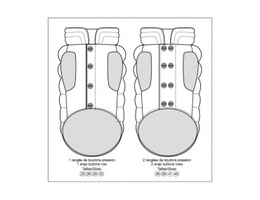• Fermeture sous le ventre par boutons pressions titane, gravĂ©s “M&P”